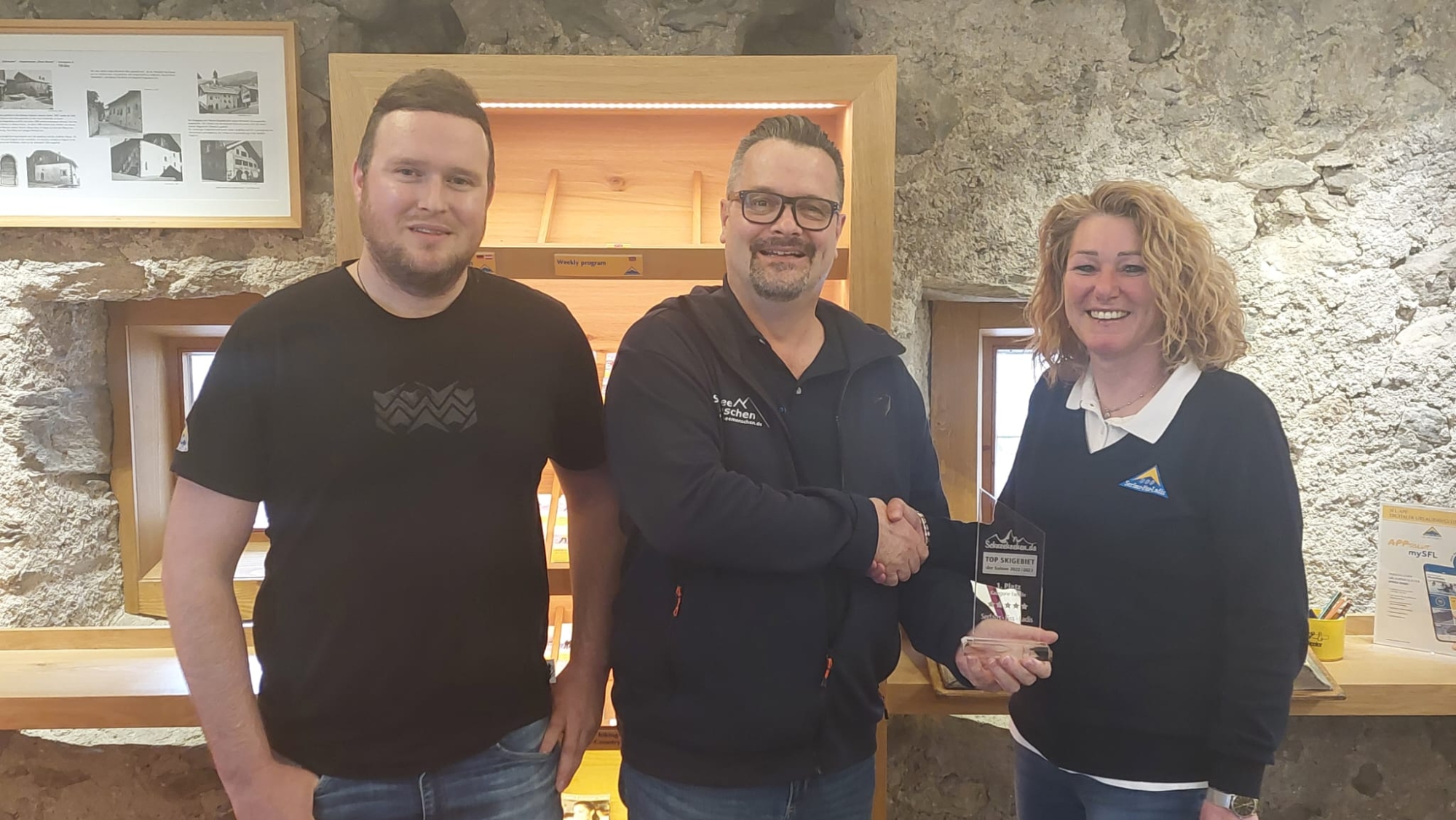 Ein Team von Schneehoehen war nach Ende der Abstimmung in den Alpen unterwegs und hat mehreren Gewinnern persönlich die heiß begehrten Awards überreicht. In Ischgl nahmen Thomas Kleinheinz (Marketingleiter Silvretta Seilbahn AG) und TVB-Obmann Alexander von der Thannen gleich vier Auszeichnungen entgegen. In Serfaus freuten sich Alexandra Hangl (Medienkommunikation. Presse & PR) und David Burtscher (Leitung Medienkommunikation) über den Preis für das beste Familienskigebiet. St. Anton am Arlberg wurde als bestes Freeride-Gebiet ausgezeichnet, den Preis nahmen vor Ort Katharina Laimer (Leitung Marketing und Presse) und Martin Ebster (Direktor Tourismusverband St. Anton am Arlberg) entgegen. Auch in Filzmoos freute man sich über die Auszeichnung als Skigebiet mit dem besten Preis-Leistungs-Verhältnis! Peter Donabauer, Geschäftsführer vom Tourismusverband Filzmoos, sowie Martina und Matthias Moosleitner, die Eigentümer der Filzmooser Bergbahnen, wurde der Preis im Frühsommer 2023 überreicht.