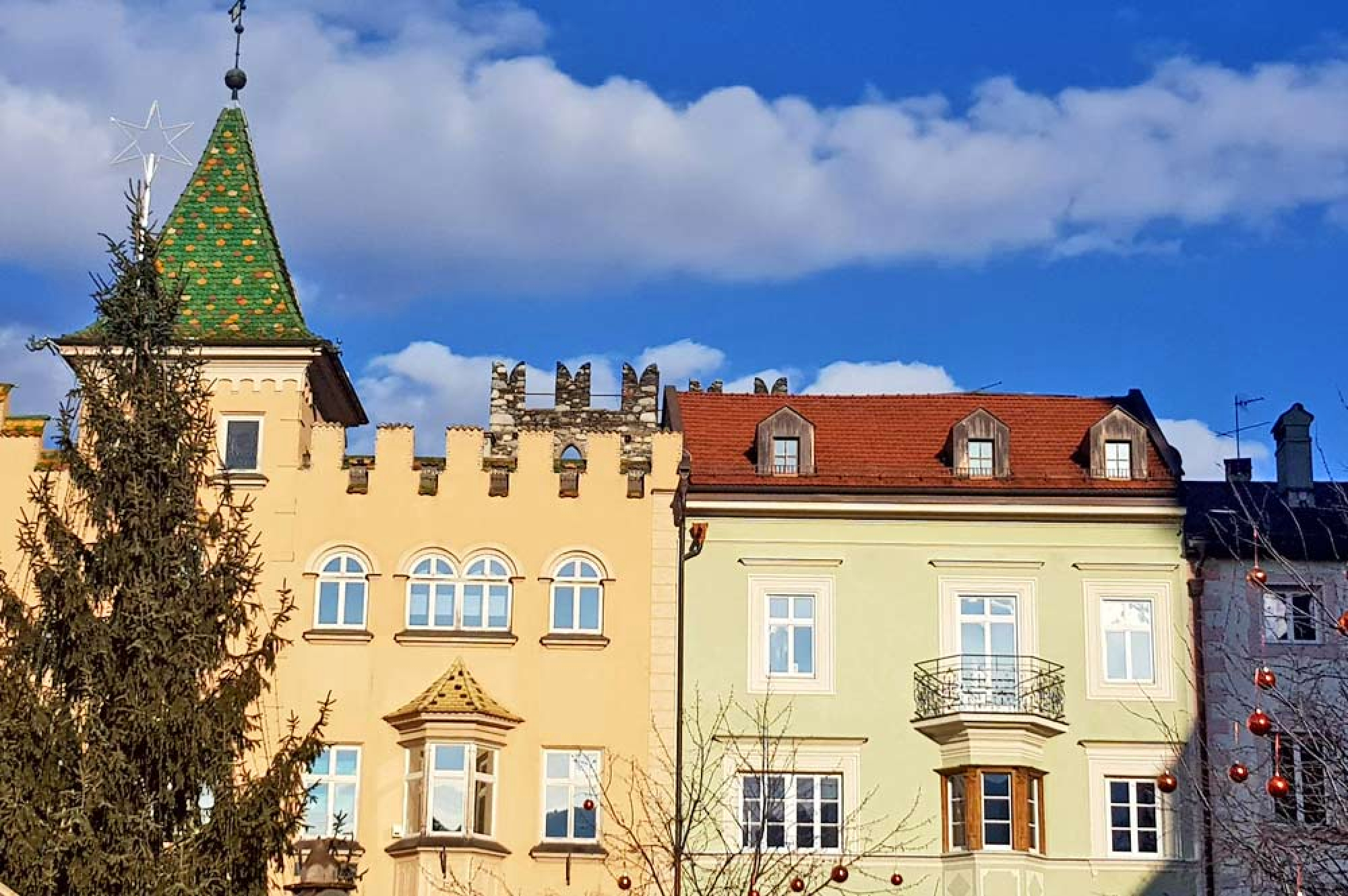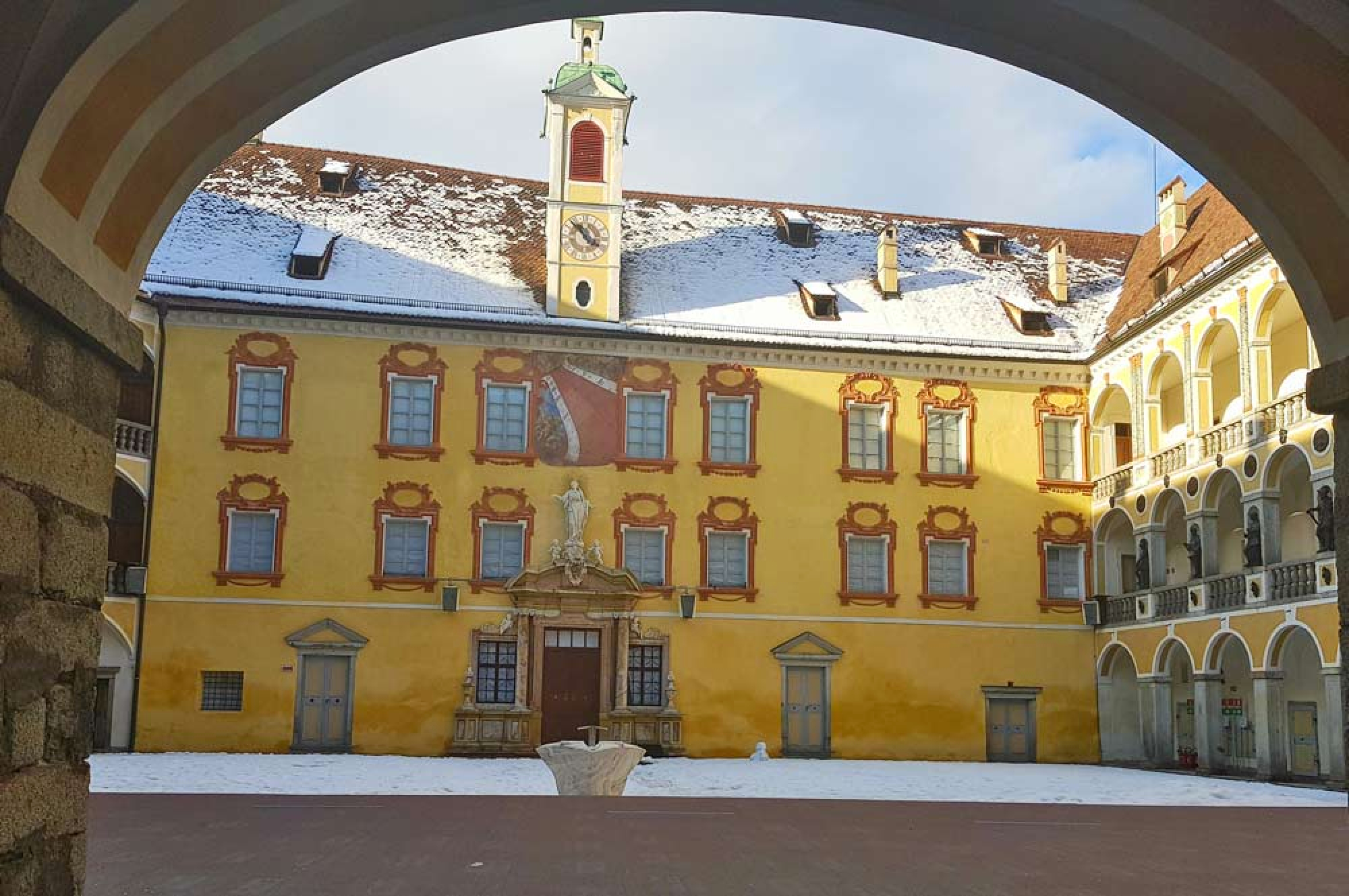 Von der Hofburg geht es direkt zum Brixner Domplatz. Hier werden noch die letzten Hütten des wunderschönen Weihnachtsmarkts abgebaut. Holzschnitzereien, Tonwaren, Glaskugeln, Krippen und weitere handgefertigte Waren wandern in Kisten und Autos. Dazwischen stehen wir mit unserem Stadtführer umringt von Dom, Rathaus und St. Michael Pfarrkirche und lauschen den Ausführungen über die kunstvollen Bauten.