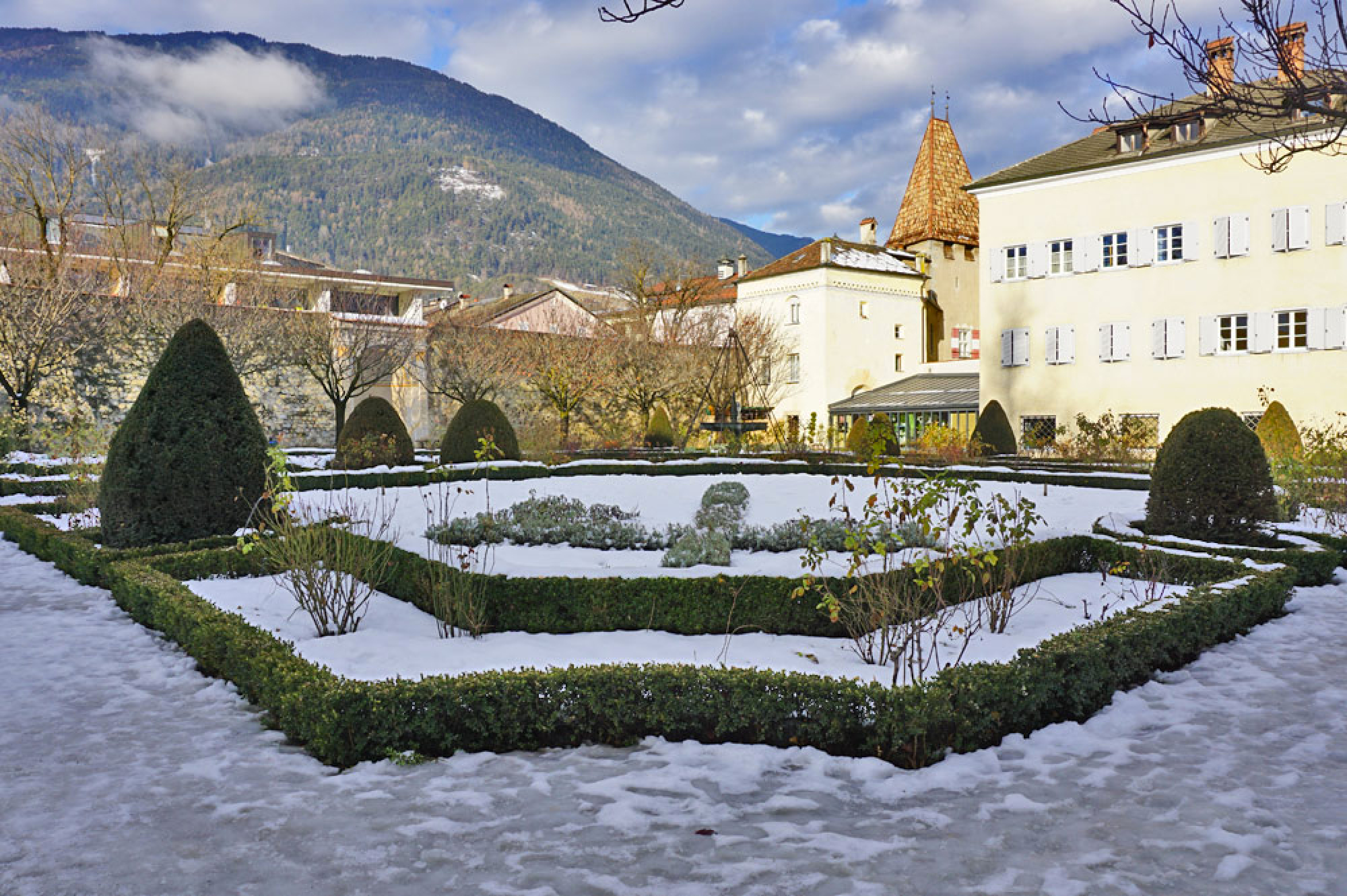 Hinter dem Sonnentor rechts gelangen wir in den 500 Jahre alten angrenzenden Herrengarten, der zur Hofburg gehört. Angelegt im Jahr 1570, im Stil der Renaissance, stand der Garten nur dem Brixner Klerus zur Verfügung. Seit den 1990er Jahren ist der historische Garten öffentlich zugänglich. Regelmäßig finden hier kleinere Veranstaltungen statt. Die Überreste der mittelalterlichen Stadtmauern, die die Anlage umgaben sind noch heute zu sehen.