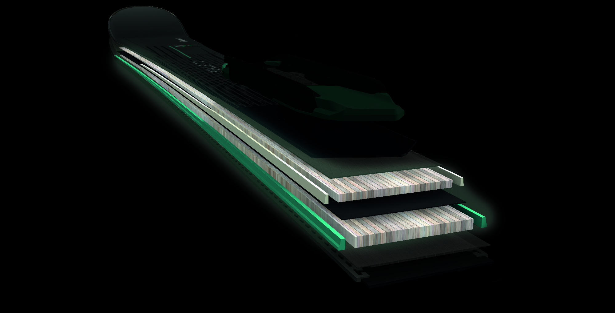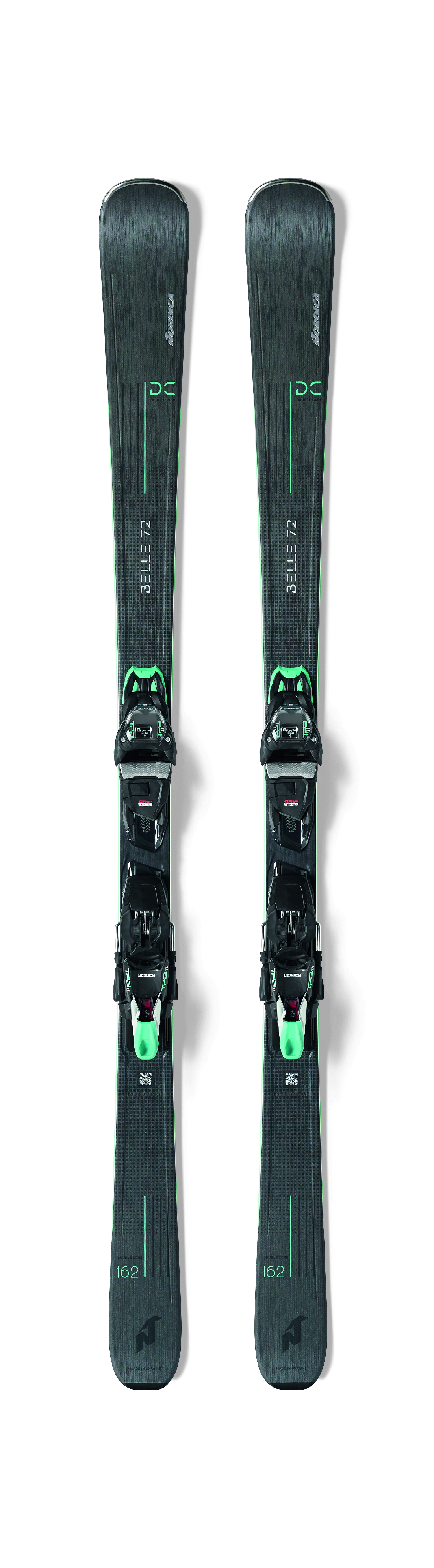Die DOUBLE CORE TECHNOLOGIE besteht vom Aufbau aus zwei Holzkernen (á 3 mm) - jeweils aus Pappelholz mit sechs Buchenholz-Stringer - und einer dazwischen integrierten Kautschukschicht. Die eher unkonventionelle Impuls-Kern-Konstruktion soll den Flex und die Energieübertragung verbessern und unabhängig von Schneeart und Untergrund ein entspanntes, spritziges und spielerisches Fahrverhalten bieten. Die entscheidende Komponente ist die Kautschuk-Schicht, die beide Holzkerne trennt und Schwingungen effektiv dämpfen kann. Farblich visualisiert wird die DC Technologie auf der Seitenwange. Eingesetzt wird DOUBLE CORE in der neuen Belles Damenserie, die schick und schlicht in einem schwarz-anthraziten Design daherkommt. Komfort und Performance, voll abgestimmt auf die Körperpositionen von Frauen – das überzeugte auch die ispo Jury, die den Belle 72 DC mit einem Winner Award auszeichnete!.