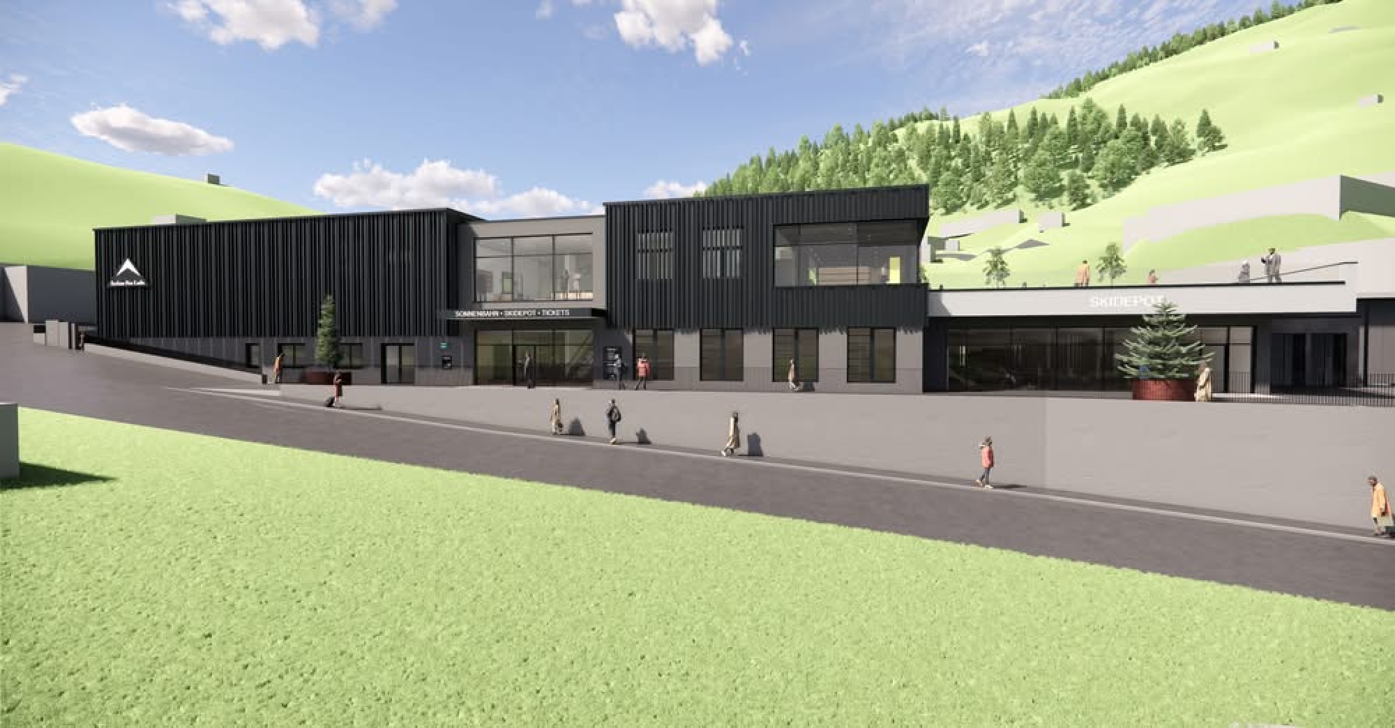 Am bequemsten gelangt ihr über Rolltreppe oder Aufzug ins neue Gebäude. Von dort aus erreicht ihr nicht nur barrierefrei und direkt die Talstation der Sonnenbahn, sondern findet auch das Skischulbüro sowie eine komfortabel gelegene Indoor-Kassa alles unter einem Dach und wettergeschützt.