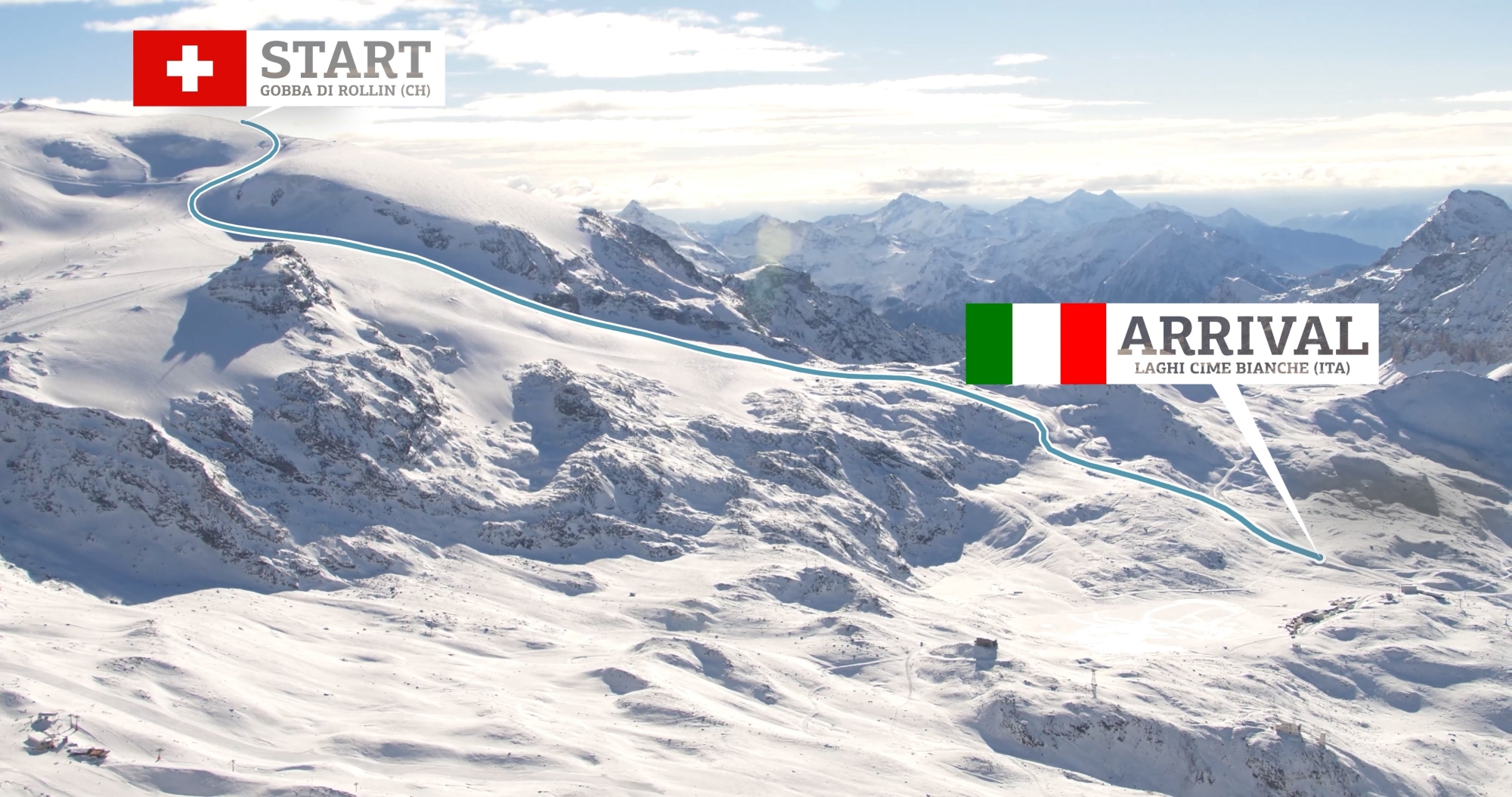 Da die neue 3S-Seilbahn von Testa Grigia zum Klein Matterhorn, die Cervinia und Zermatt ganzjährig verbinden wird, erst im Frühjahr 2023 fertiggestellt werden kann, wird der Start nach unten verlegt. Für die Abfahrt der Männer 2022 erfolgt er in Zermatt auf einer Höhe von 3700 Metern. Das Ziel in Cime Bianche, Cervinia, liegt auf 2835 Metern.