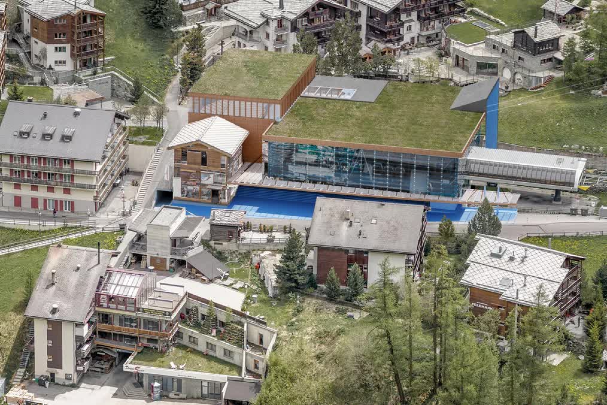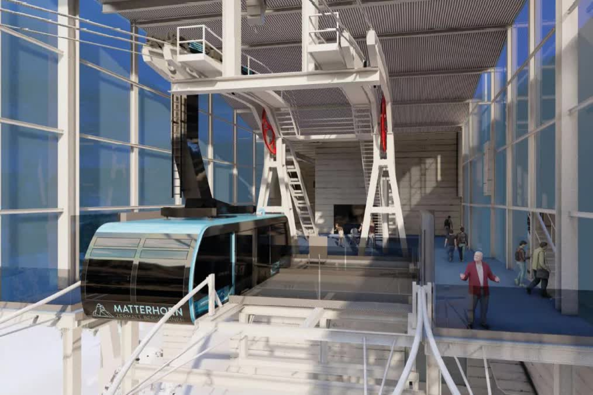 Die bestehende Achtergondel «Matterhorn-Express» wird ihren Betrieb während der gesamten Bauzeit aufrechterhalten. Der Neubau der Talstation bringt einen optimierten Gäste- und Gepäckfluss, was im Hinblick auf die Komplettierung des Matterhorn Alpine Crossing eine wichtige Rolle spielt. Die moderne Architektur mit einem Lichtschacht in der Mitte des Gebäudes vereint zeitgemässes Flair mit hoher Funktionalität und Nachhaltigkeit. In den oberen Etagen entstehen neue, räumlich abgestimmte Bürolokalitäten für die Verwaltung der Zermatt Bergbahnen und der unterirdische Umschlagplatz sorgt für Entlastung der Schluhmattstrasse.