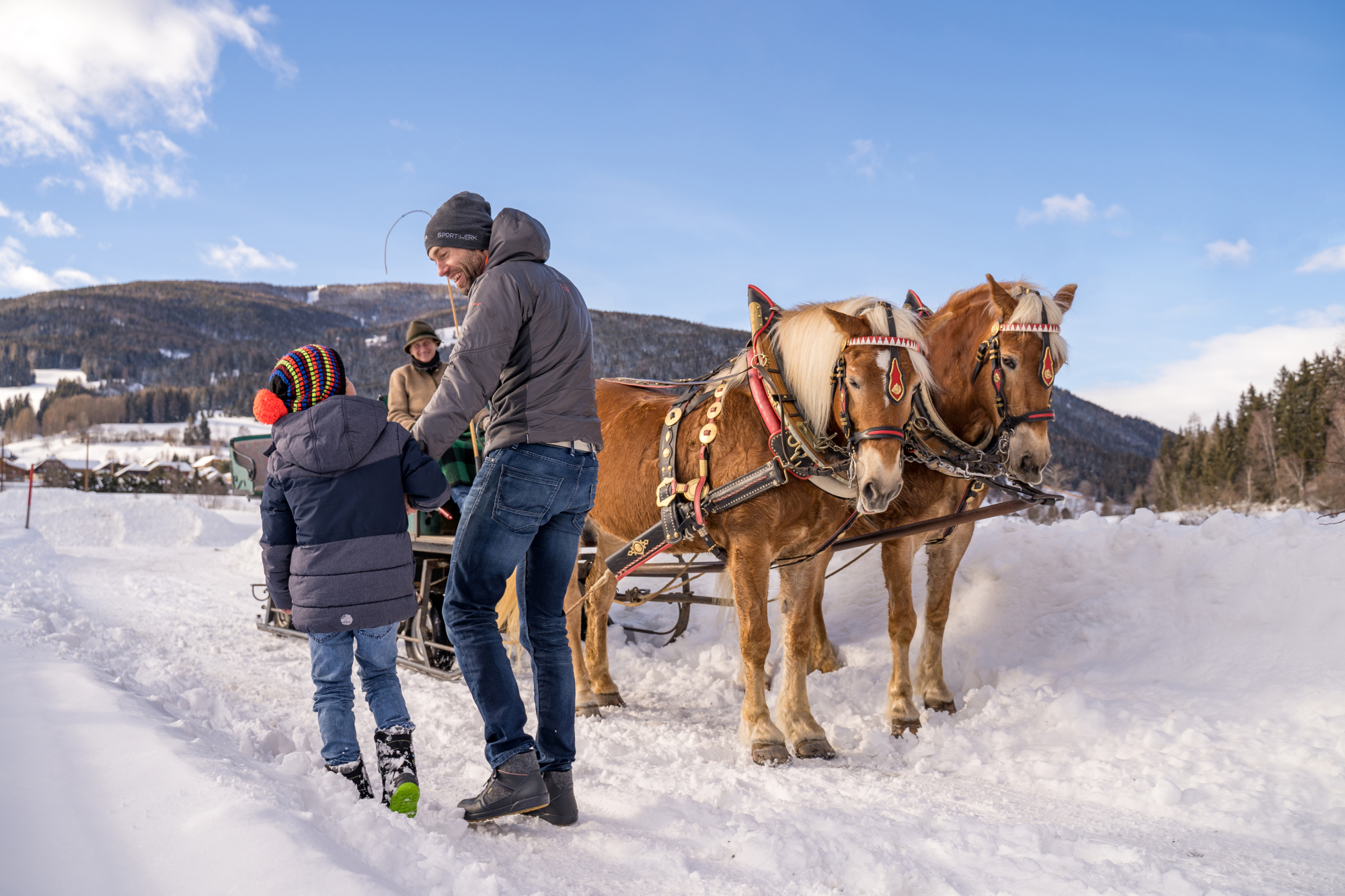 Ein absolut romantisches Highlight sind die Pferdeschlittenfahrten durch die tief verschneiten Täler des Salzburger Lungaus. Eingekuschelt in warme Decken geht es gemütlich durch die Winterlandschaft – perfekt für eine Auszeit zu zweit oder mit der ganzen Familie.