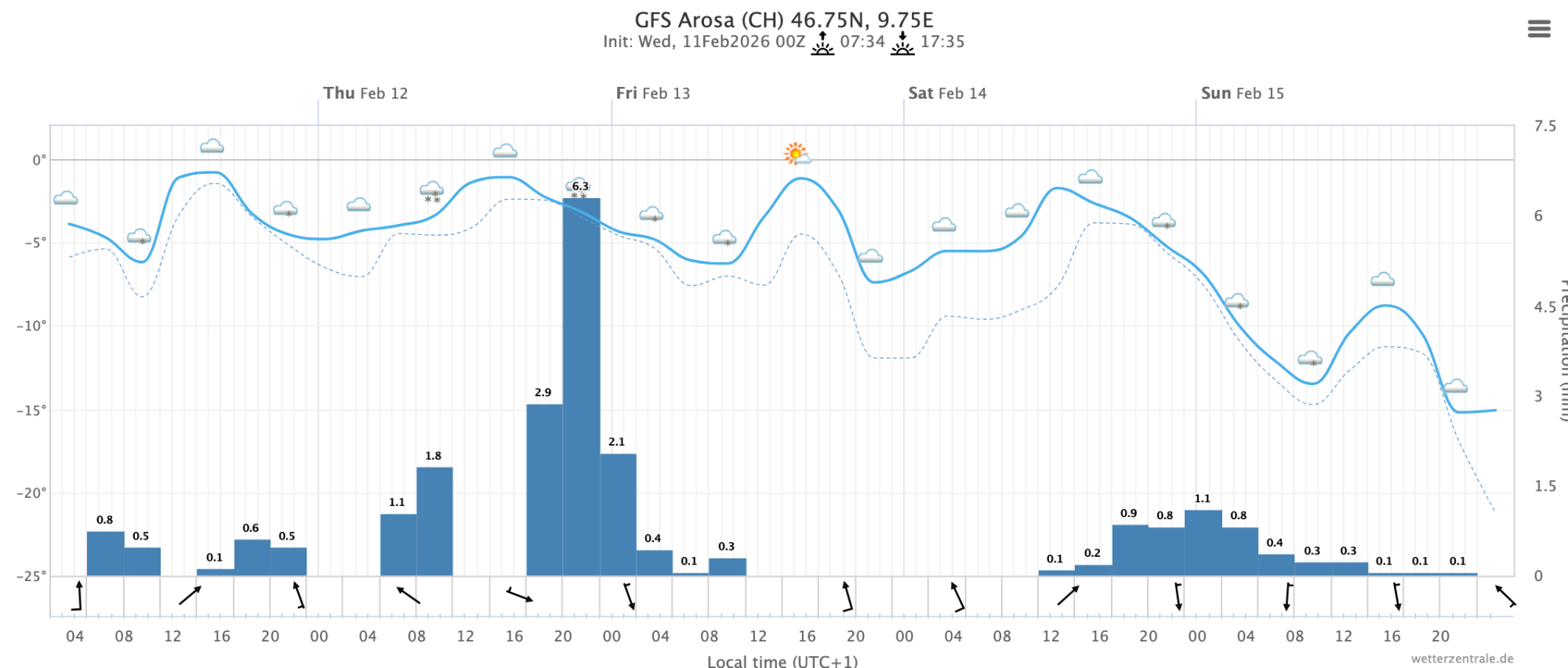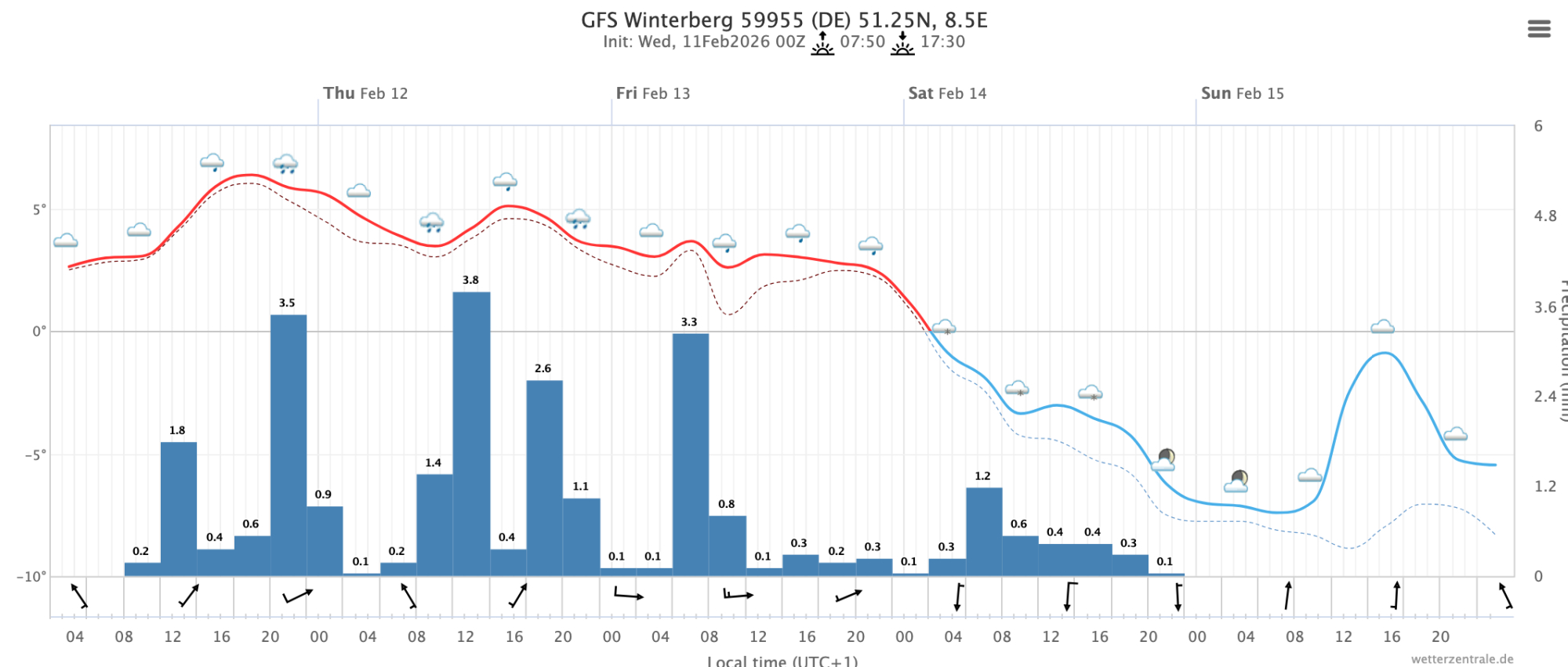 Schneevorhersage Mittwoch (11.2.) bis Sonntag (15.02.):