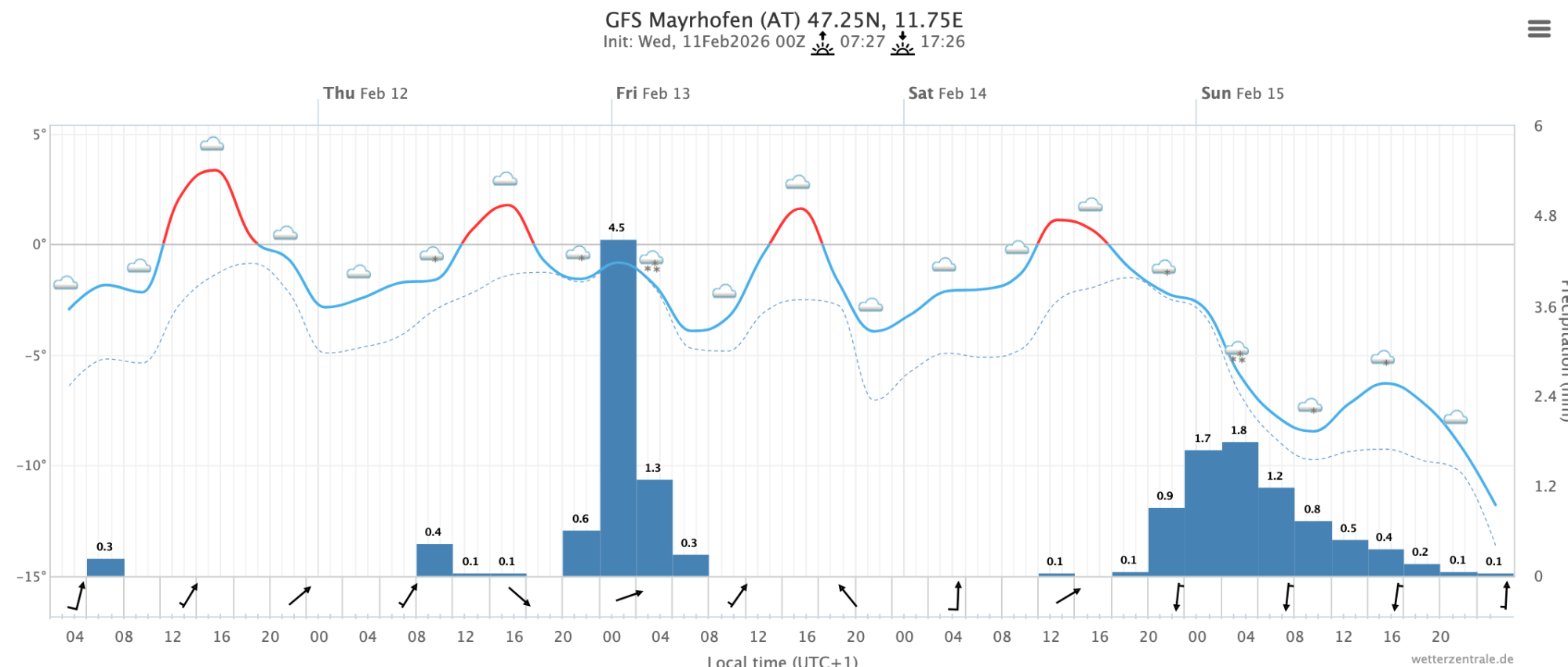 Meteogramm Mayrhofen © www.wetterzentrale.de