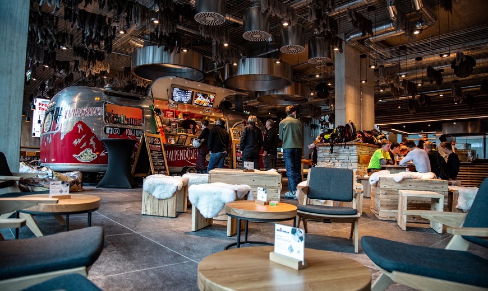 Die Markthalle – In der großzügigen Markthalle ist an unterschiedlichen Stationen für jeden Gusto das richtige dabei. Wenn ihr nach eurem Tag auf der Piste und an der frischen Luft wieder zurück ins Tal kommt, warten hier z. B. Spareribs, Alpen Döner und Pizza.