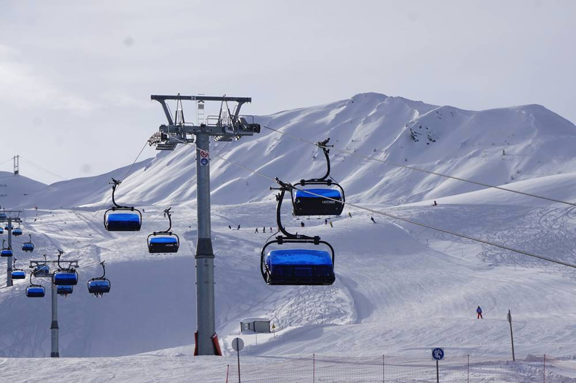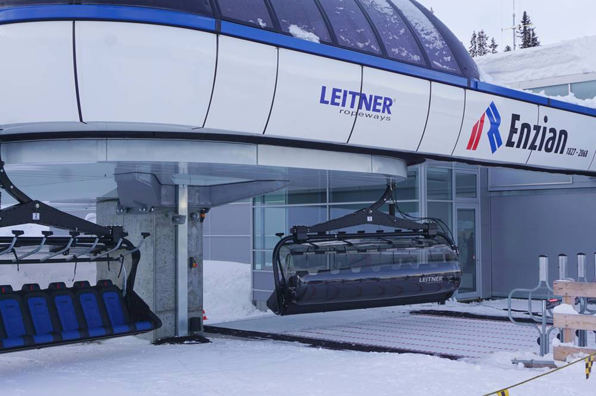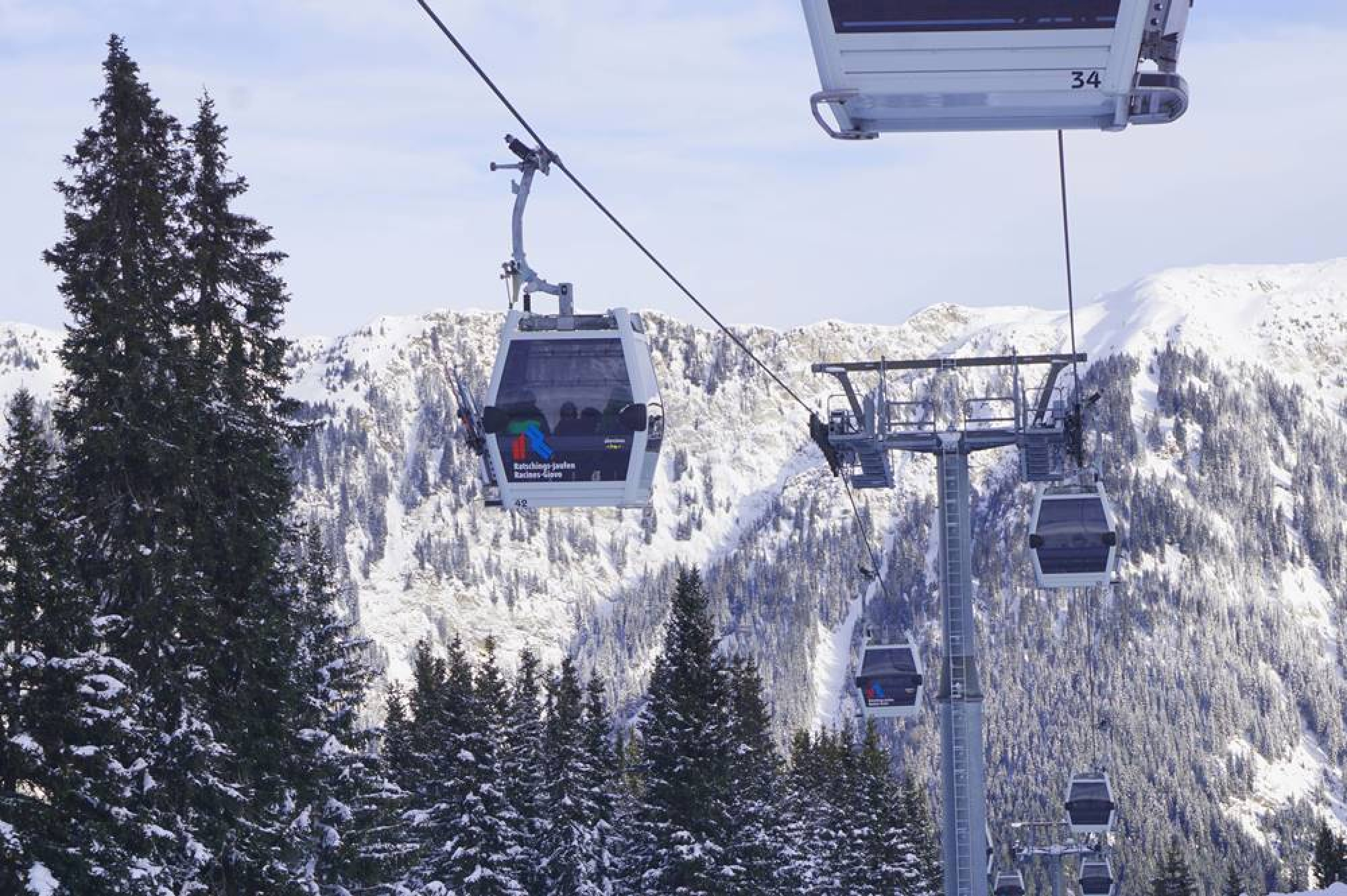 Morgens, nach einem ausgewogenen Frühstück vom Buffet, geht es für uns los zur Gondelbahn. Die Talstation ist neu und modern. Es gibt einen riesigen, über zwei Stockwerke verlaufenden, Ski- und Rodelverleih, der sehr gut bestückt ist. Außerdem ist ein großes und topmodernes Skidepot in der Talstation untergebracht. Das Depot hat eigens in jedem Schrank eine Belüftungs- und Desinfizierungsanlage eingebaut, so dass man immer trockene und saubere Skischuhe hat. Wir sperren hier unsere Helme weg, da wir diese erst später am Tag brauchen. Direkt neben der Talstation gibt es ein Parkhaus für die Touristen. Aber auch ein kostenloser Skibus fährt alle 30 Minuten zur Station. An der Piste befindet sich ein Restaurant mit einer Outdoor- und einer Schirmbar. Hier läuft Après-Ski-Musik und es werden bereits Vorbereitungen für den Mittag getroffen.