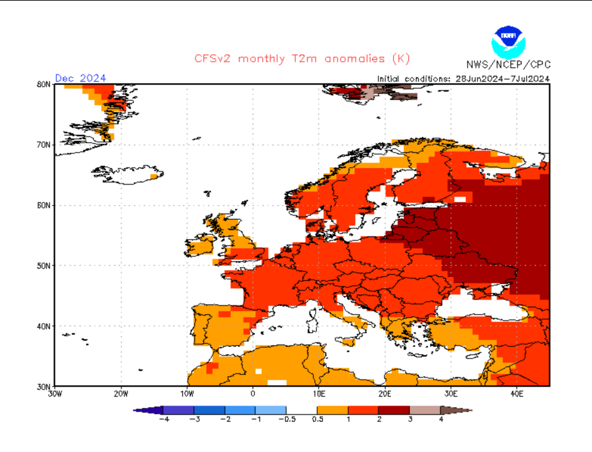 CFS Wettermodell (NOAA), Temperaturabweichung November & Dezember 2024