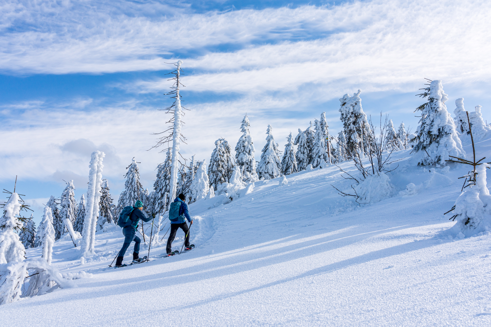 Die Stille des Winters und die Ruhe der Natur kann man beim Schneeschuhwandern perfekt erleben. Ausgestattet mit Schneeschuhen kommt man an Plätze, die beim “normalen” Winterwandern nicht zugänglich sind. Das Arbergebiet eignet sich dazu besonders gut, auch rund um Bodenmais gibt es viele markierte Touren.