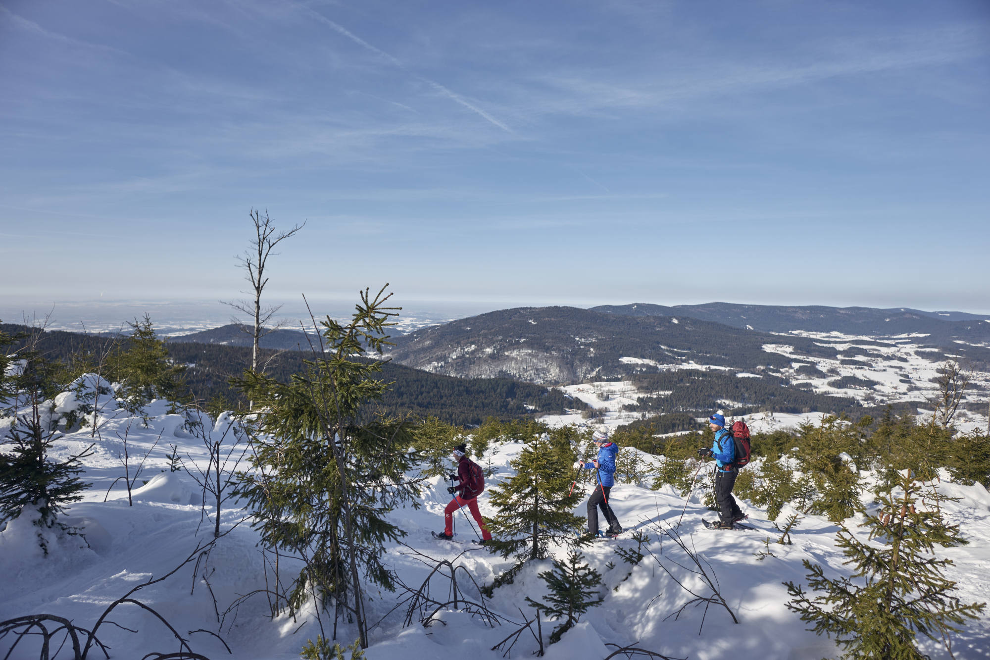Rund um den Hirschenstein kann man zudem sehr gut Schneeschuhwandern, es werden auch geführte Touren angeboten. Hier führen Wanderexperten zu den schönsten Spots zwischen dem Bayerischen Wald und der Donauebene.
