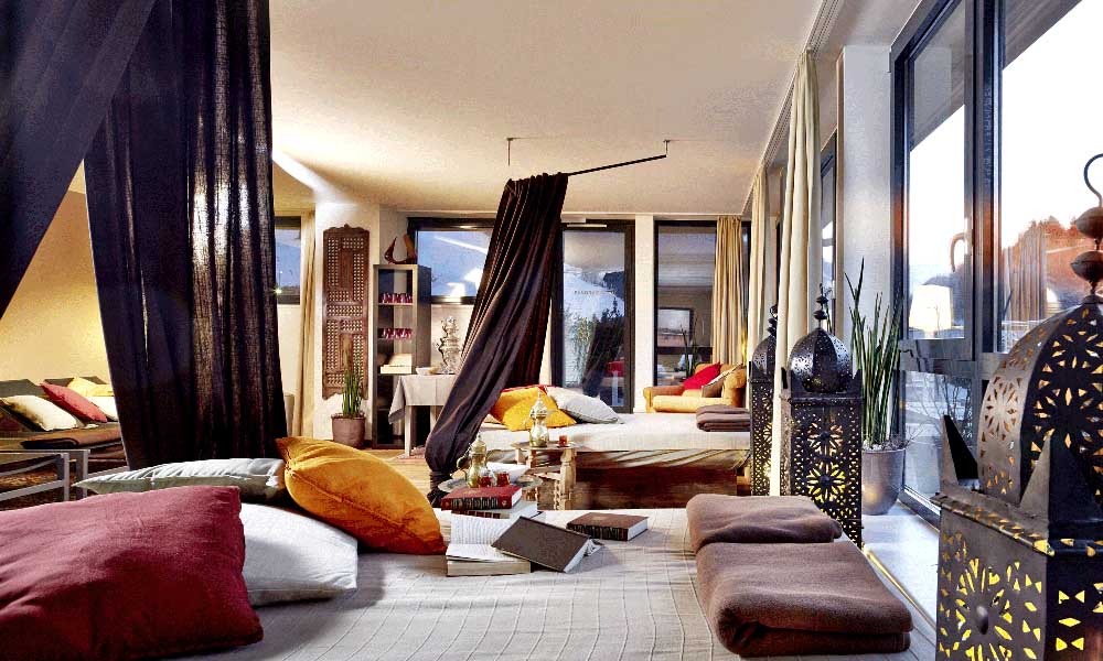 Die Alpen-Karawanserai in Saalbach Hinterglemm im Salzburger Land stellt ein vollkommen neuartiges Hotel-Erlebnis dar. Sie vereint alpenländische ursprüngliche Gastlichkeit mit einem modernen Wohnkonzept und gleichzeitiger Fokussierung auf die innere Balance - inspiriert durch einen ganzheitlichen östlichen Ansatz für Körper und Geist.