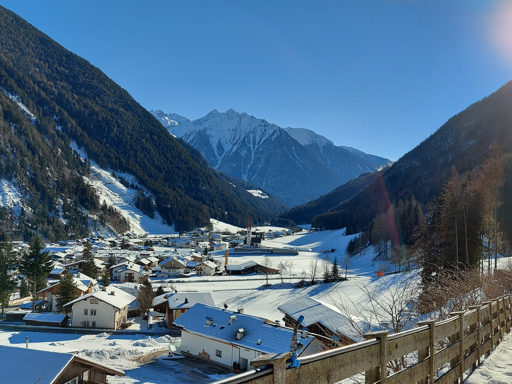 Das Hotel Schwarzbachhof befindet sich in Luttach im Ahrntal, südlich des Alpenhauptkammes. In der Skiworld Ahrntal mit seinen Skigebieten Speikboden und Klausberg können Sie ca. 80 Pistenkilometern auskundschaften und einen herrlichen Blick auf den Alpenhauptkamm geniessen. Vom Speikboden erreicht man per Ski oder Rodel unser Hotel. Verschiedene Winterwanderungen im Schnee zu bewirtschafteten Hütten gibt es zur Genüge. Dort kann man einkehren und sich bei einem Jägertee aufwärmen, bevor Sie wieder ins Hotel zurückkehren.