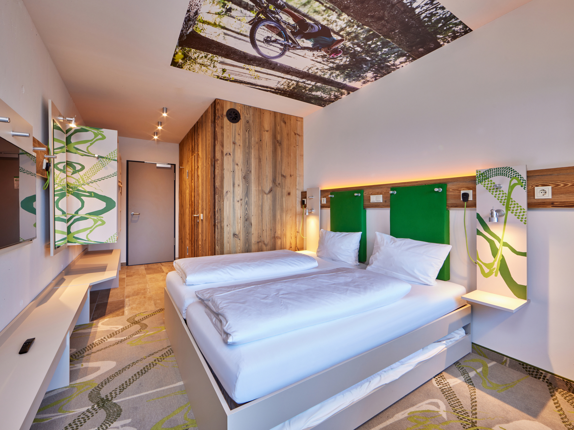 Die trendigen Zimmer bieten auf 21m² viel Raum zum Wohlfühlen. Neben dem bequemen Doppelbett ist das Highlight die große Fensterbank mit bequemen Kissen auf der es sich traumhaft auch zu zweit entspannen lässt. Die Explorer-Zimmer sind funktionell ausgestattet mit vielen Ablageflächen, Haken, Regalen und Schränken – perfekt für Gäste, die mit großem Sport-Equipment unterwegs sind. Außerdem gibt es einen großen Safe, in dem alle Wertsachen sicher aufbewahrt werden können. Die Zimmer sind mit einem Flatscreen-TV ausgestattet. Highspeed WLAN ist im gesamten Haus und auf allen Zimmern gratis verfügbar! Das Explorer-Badezimmer ist ein großzügiger Raum mit geräumiger Dusche und einem farbenfrohen Look, der gute Laune macht.