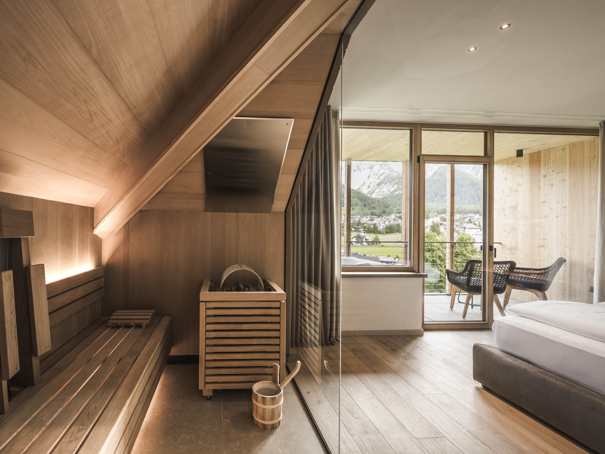 Das Bedürfnis nach Ruhe und Entspannung wächst genau so wie die Welt schneller, lauter und hektischer wird. Darum sehnt man sich nach Orten der Kraft, wo man regenerieren und Energie auftanken kann. Dort reflektieren sich die Interessen, Gefühle und Visionen des Resorts. Das SPA-Dolomiti auf 1.300 m² mit 20 Bade-, Schwitz- und Relaxattraktionen soll eine Möglichkeit sein, Frieden, Energie, innere Ruhe und Vitalität zu erleben. Tauchen Sie ein in die großzügig dimensionierten Poolanlagen! Dazu zählen der Panoramapool 30°C, Whirlpool 35°C ebenso wie der neue gigantische Whirlpool im Freien. Erleben Sie Bewegung kombiniert mit jeder Menge Spaß im Fit & Fun Gym. Bleiben Sie in Bewegung, denn Bewegung ist Leben! Genießen Sie viele Leistungen im Preis inklusive. Der neue Hit 2024 für Kinder & Familien: Ein eigener Wellnessbereich mit Pools und Dress-On-Saunen. Der neue Sky SPA (500 m²) ist eine wahre Wellness-Oase nur für Erwachsene, in der man von jedem Punkt aus einen herrlichen Blick über die atemberaubende Landschaft des UNESCO-Welterbes hat. Für den allerschönsten Blick allerdings muss man das Schwimmen unterbrechen – denn vom Rand des Infinity-Pools ist die Aussicht die atemberaubendste. Auch die Saunen haben einen wunderbaren Blick in die Umgebung, den Naturpark Fanes-Sennes-Prags.