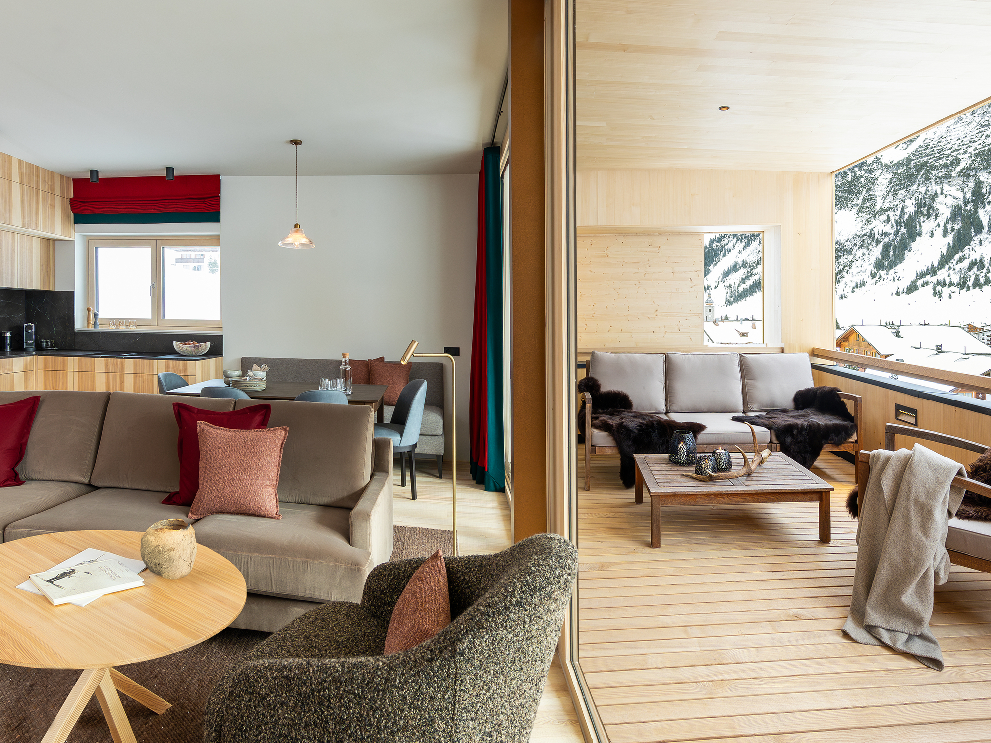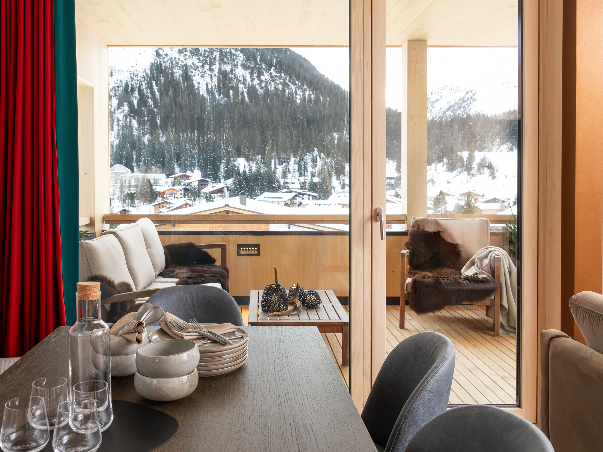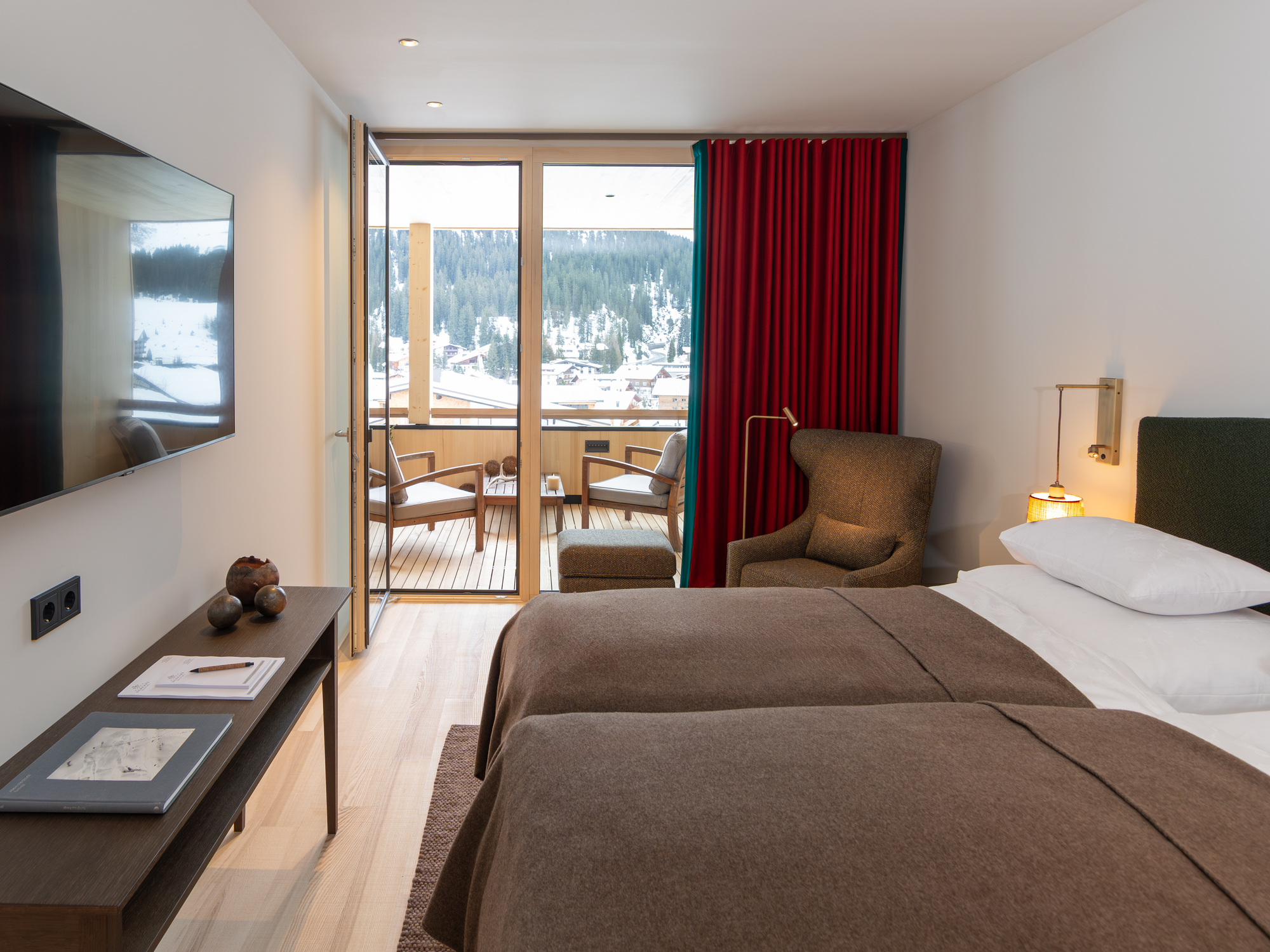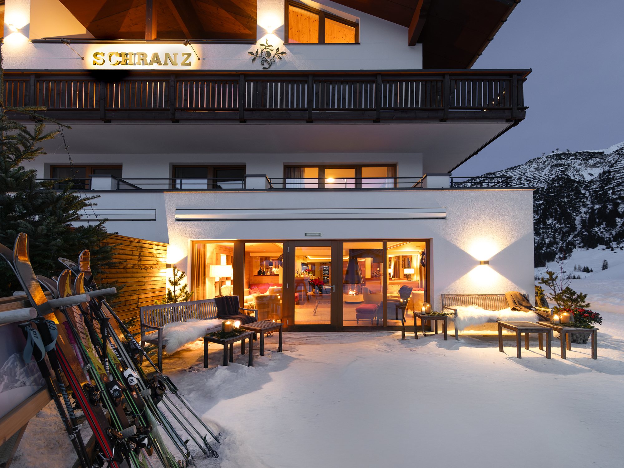 Im Winter bietet das Hotel Schranz in Lech am Arlberg das ideale Urlaubszuhause für einen unvergesslichen Skiurlaub. Der Skitag beginnt hier direkt vor der Haustür: Skier anschnallen und in das weltbekannte Skigebiet Ski Arlberg eintauchen. Lech am Arlberg überzeugt mit hervorragenden Schneebedingungen und bestens präparierten Pisten. Die unmittelbare Nähe zum Lift ermöglicht einen schnellen und bequemen Einstieg ins Skivergnügen. Nach einem aufregenden Tag im Schnee ist das Hotel Schranz der ideale Rückzugsort. Die Kaminlounge lädt zum Entspannen ein: Hier genießen Gäste bei einem Glas Wein oder einem heißen Getränk wohlverdiente Ruhe, während der Blick auf die verschneiten Gipfel und das winterliche Panorama die Herzen höherschlagen lässt. Am Morgen erwartet die Gäste im Hotel Schranz ein reichhaltiges Frühstücksbuffet, das mit regionalen Spezialitäten und frischen Zutaten für einen energiereichen Start in den Tag sorgt. Die Auswahl umfasst alles, was man sich für ein ausgiebiges Frühstück wünscht – von frischem Gebäck über herzhafte Speisen bis hin zu süßen Leckereien. Am Nachmittag, nach erlebnisreichen Stunden auf den Skipisten, sorgen hausgemachte Kuchen und Kaffee in der gemütlichen Lounge für Genussmomente. Die Zimmer des Hotel Schranz empfangen die Gäste nach einem aktiven Tag mit moderner, alpiner Einrichtung und warmen Holzelementen und schaffen so eine behagliche und entspannende Atmosphäre. Jedes Zimmer bietet einen spektakulären Blick auf die umliegenden verschneiten Berge und das beeindruckende Winterpanorama. Im Wellnessbereich finden die Gäste Ruhe und Erholung: Innenpool, Sauna und Ruheraum laden zum Entspannen ein. Zusätzlich sorgen Massagen und weitere Anwendungen für Verwöhnmomente. Auch Hundebesitzer sind hier willkommen: Für vierbeinige Gäste gibt es spezielle Ausstattungen und Wanderwege in der Umgebung, hervorragend für gemeinsame Spaziergänge im Schnee. So erleben auch Hunde den winterlichen Charme von Lech. Das Hotel Schranz vereint alles, was einen perfekten Winterurlaub ausmacht: direkten Zugang zu den Pisten, eine gemütliche Atmosphäre, ein reichhaltiges Frühstück und entspannte Nachmittage bei Kaffee und Kuchen. Für alle, die den Winter in den Alpen in vollen Zügen genießen möchten, ist das Hotel Schranz der ideale Rückzugsort.