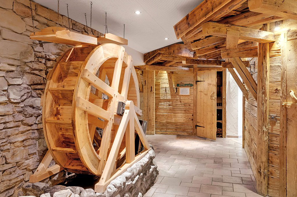 Natürliche Materialien wie altes, ursprüngliches Holz und Steine strahlen in der 1.500 m² großen Alpen-Wellnesswelt eine einzigartige Ruhe und Gelassenheit aus. Das Wellness-Team geht sorgsam auf Ihre Bedürfnisse ein und bietet eine reiche Angebotspalette. Aufgrund der Vielfalt an Einrichtungen und professionellen Anwendungen ist der Wellnessbereich etwas ganz Besonderes. Genießen Sie zum Beispiel die Allgäuer Sauna Alpe - eine klassische finnische Sauna im Außenbereich, lassen Sie sich vom wunderbaren Duft von frischem Brot in einem Brotbad verführen, erleben Sie Naturgewalten, die im Erdinneren vorherrschen eindrucksvoll im Steinbad oder lassen Sie sich einfach von der Harmonie und der Atmosphäre in der Beauty-Abteilung verwöhnen. Besonderen Spaß garantiert Ihnen der neue 360 m² große Natur-Badesee, der im Winter zum Schlittschuhlaufen oder einer Partie Standlschießen einlädt.