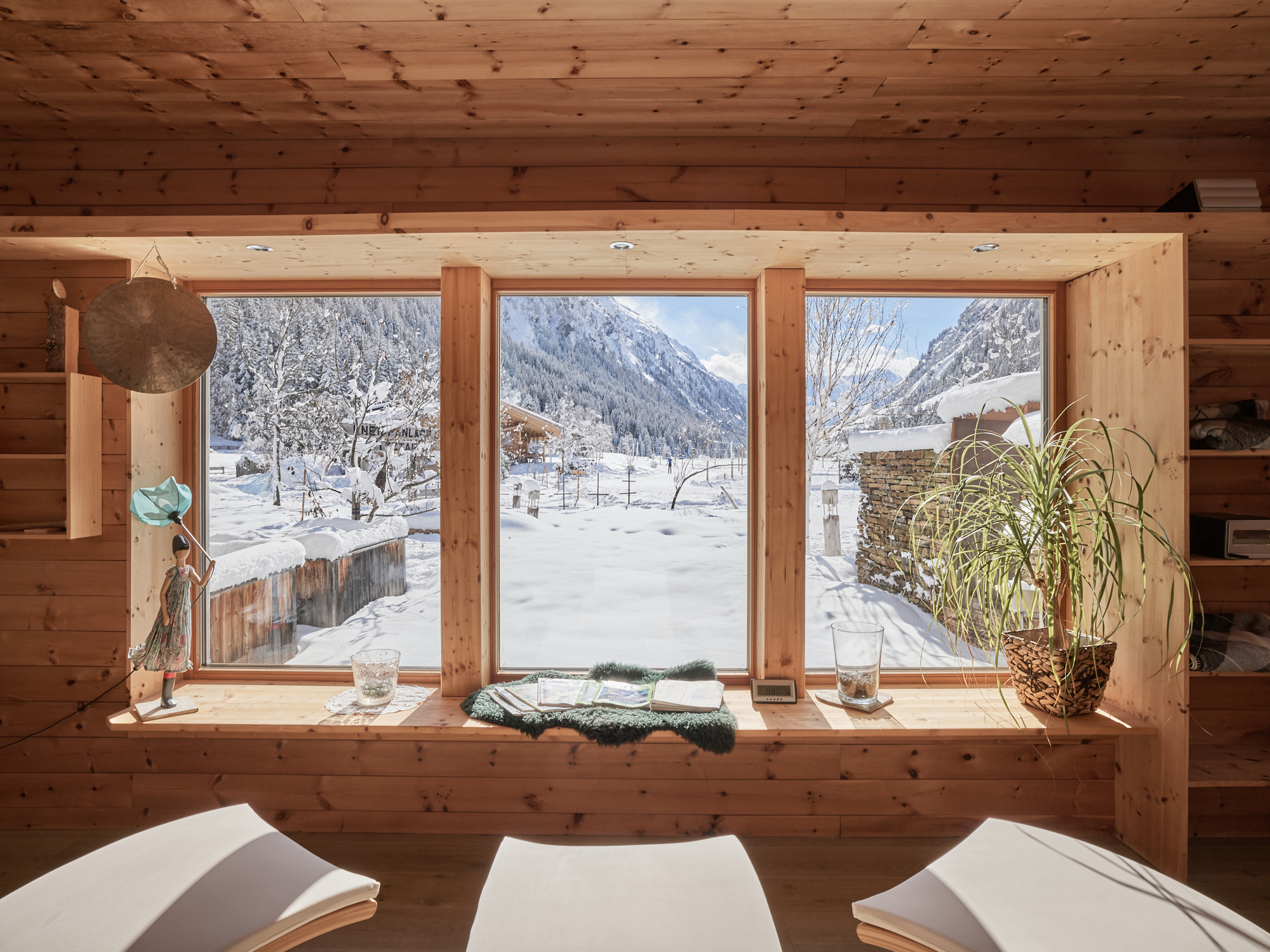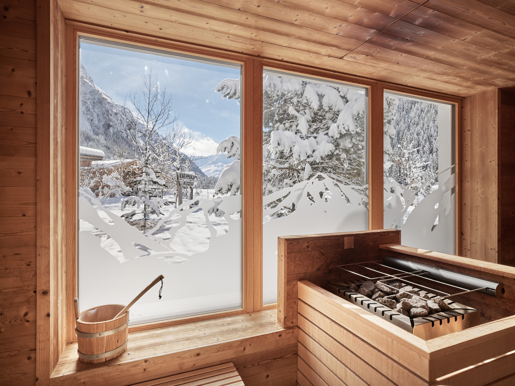 Nach einem aktiven Tag auf den Brettern lädt der hauseigene Wellnessbereich zum neue Kräfte sammeln ein. Hier stehen Ihnen Panoramasauna, Infrarotraum, Kneippbecken und Ruheraum zum Entspannen zur Verfügung. Relaxen Sie in der Sauna am Hof und genießen Sie anschließend im Zirbenruheraum den Blick zur Wildspitze.