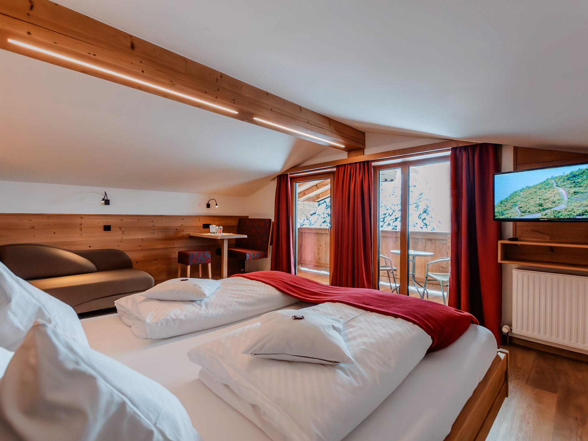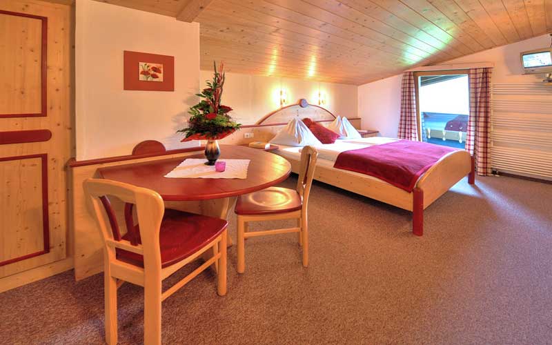 Die Zimmer des Hauses wurden überaus liebevoll, gemütlich und ganz persönlich mit Vollholzmöbeln eingerichtet. Der Großteil der Zimmer verfügt über einen Balkon, von dem Sie einen herrlichen Blick auf die Umgebung haben. Auch die Appartements im Nebenhaus wurden mit viel Liebe mit Möbeln aus Vollholz ausgestattet. Diese bestehen aus einem geschmackvoll eingerichteten Wohnraum mit einer ausziehbaren Couch, separatem Schlafzimmer, Vorraum, Dusche und separatem WC. Zwei der Appartements befinden sich im Erdgeschoss, zu den Appartements im 1. Stock gehört jeweils ein Balkon. Hier finden Sie auch die Sauna und die Infrarotkabine in der Sie sich an kalten oder verregneten Tagen bestimmt wohlfühlen werden.