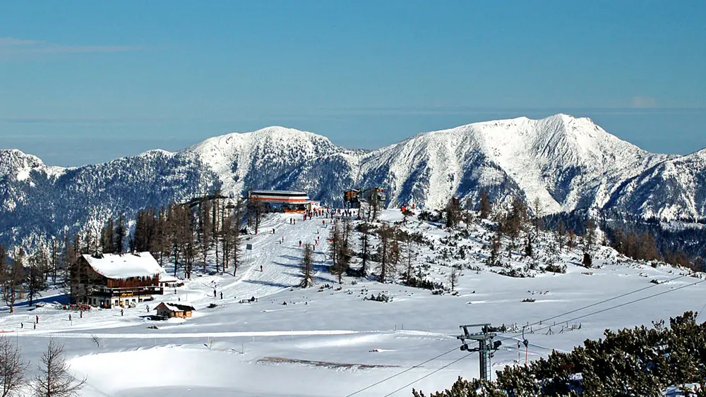 Im Skigebiet Hinterstoder bringen 14 moderne Liftanlagen die Wintersportler von rund 590 Meter bis auf 2.000 Metern. Wer mit der Gondelbahn durch den dicht verschneiten Winterwald in die Berge fährt, erreicht auf etwa 1.300 Metern Höhe ein atemberaubendes Plateau, die Hütterer Böden. Von hier aus führen Skipisten hinab ins Tal und weitere Lifte hoch zum Hutterer Höss, dem offiziellen Skiberg des Ortes Hinterstoder.