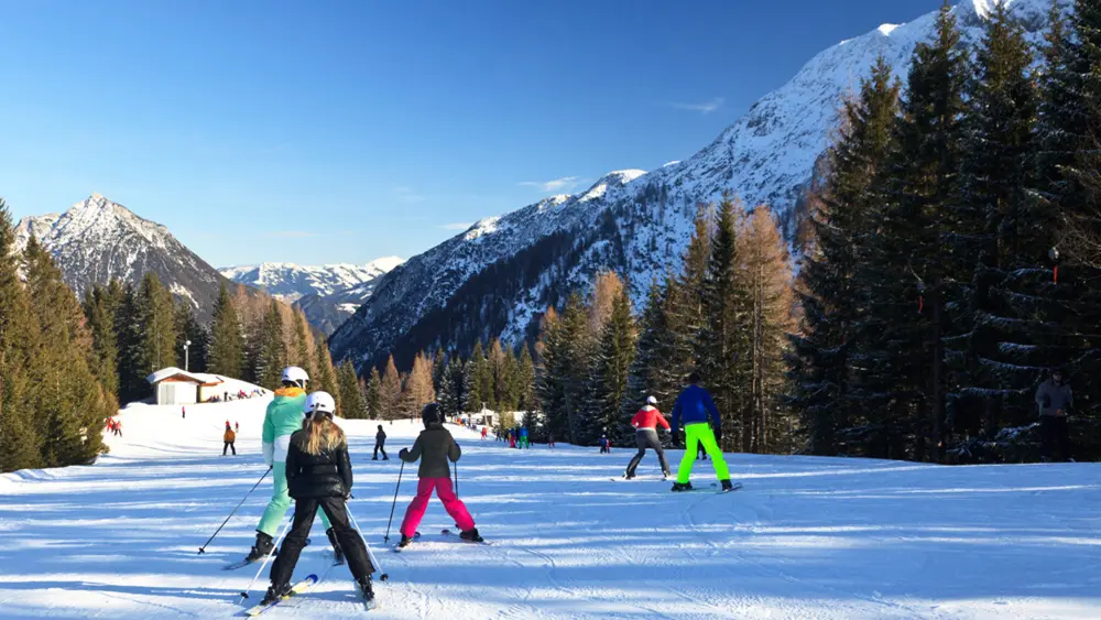 Skifahrer auf der Übungspiste im Skigebiet Pertisau