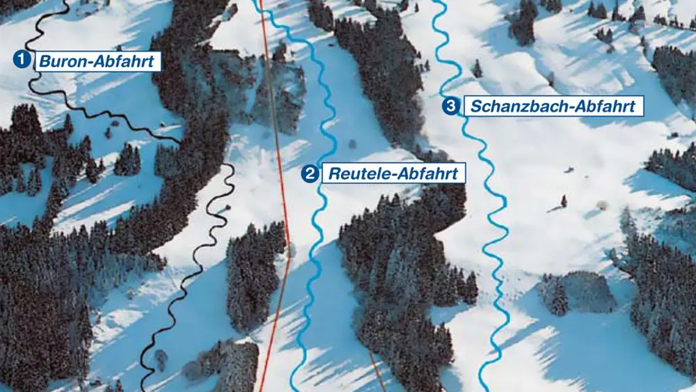 Blick auf die Piste vom Tal aus
