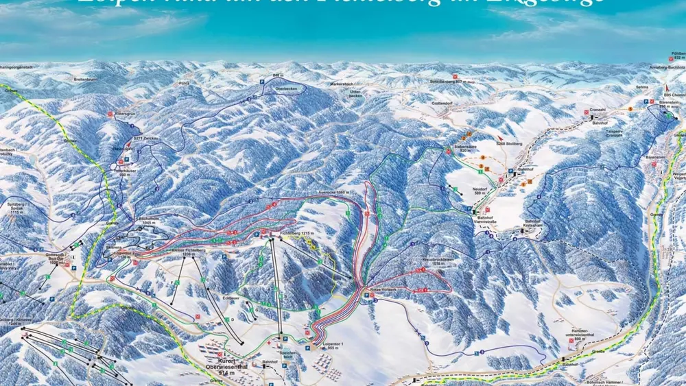 Blick auf den Skihang am Fichtelberg