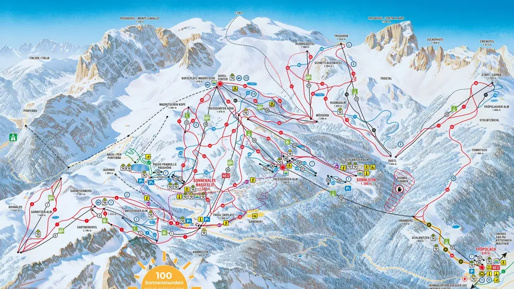 Das Nassfeld gilt als sehr schneereich und bietet abseits der Pisten viele Möglichkeiten